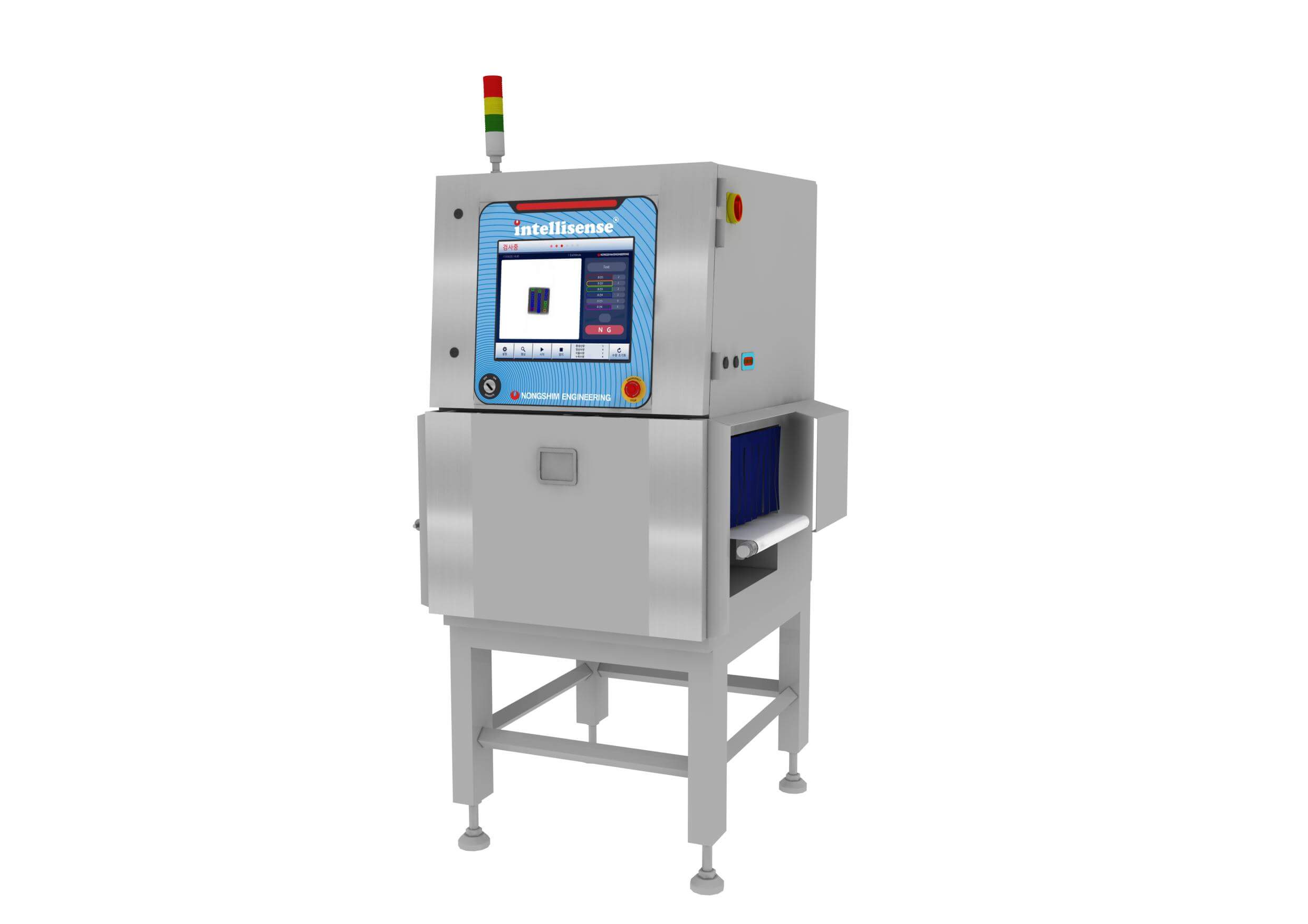 ПРОДУКТЫ Упакованные товары, пакетики, Кимчи, соус, жидкие закуски, ветчина и т. д. Самый распространенный тип одиночного рентгеновского луча, специализирующийся на проверке инородных веществ в упакованных продуктах с использованием нисходящего метода.
